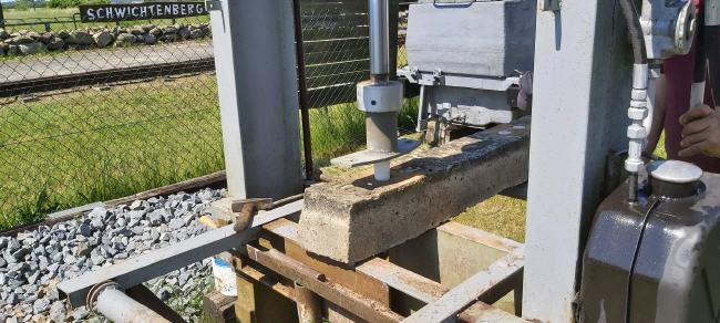 Wenn Schwellen ausgetauscht werden müssen, ist die Vorbereitung wichtig. Hier das Verpressen von Dübeln in Betonschwellen.